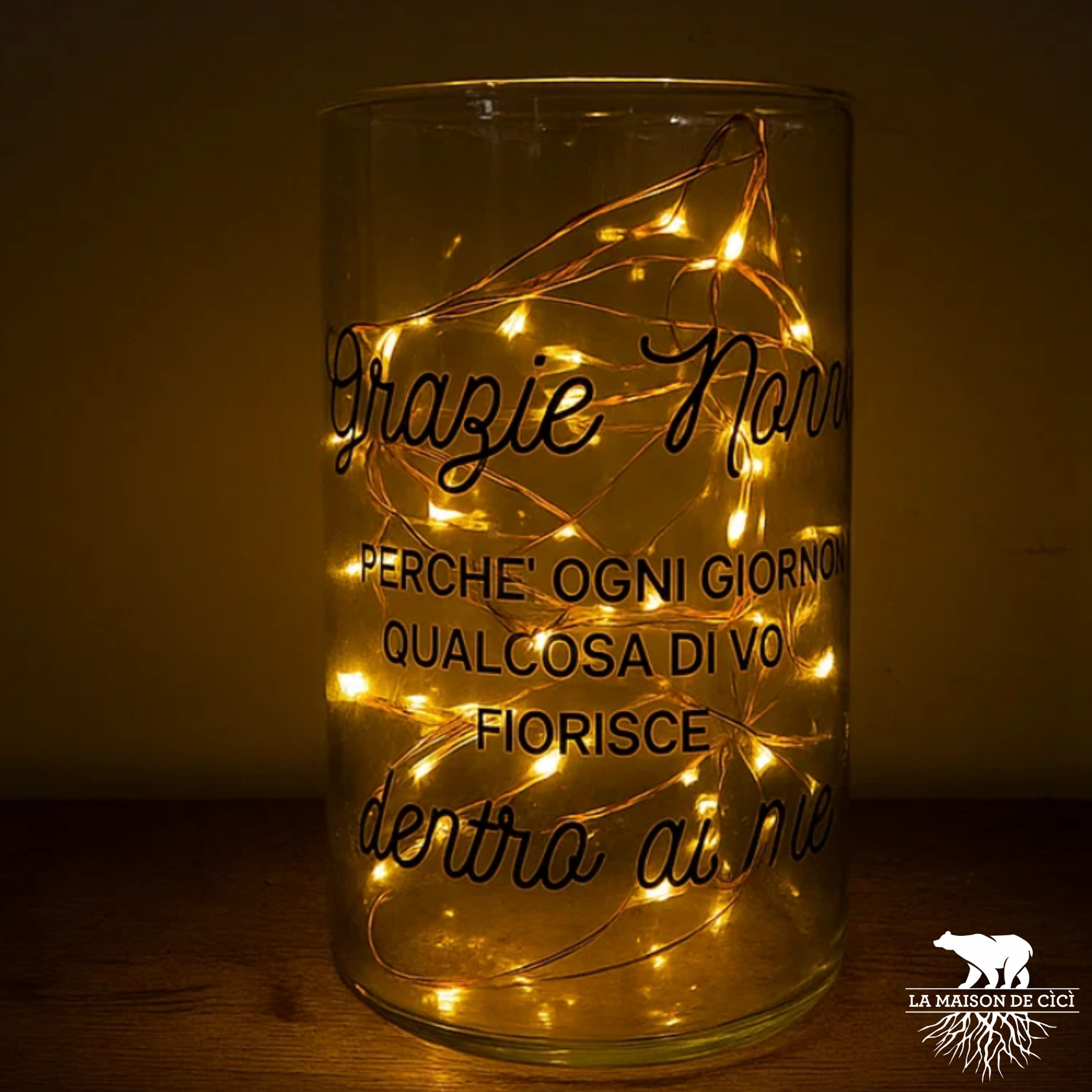 Rendi speciale la Festa dei Nonni con questo raffinato vaso in vetro inciso con la frase:
